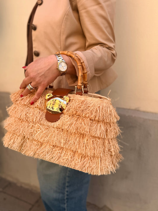 Prezzo di listino €229,00 EURPrezzo di listinoPrezzo unitario / perPrezzo scontato €229,00 EURBorsa rafia e frange