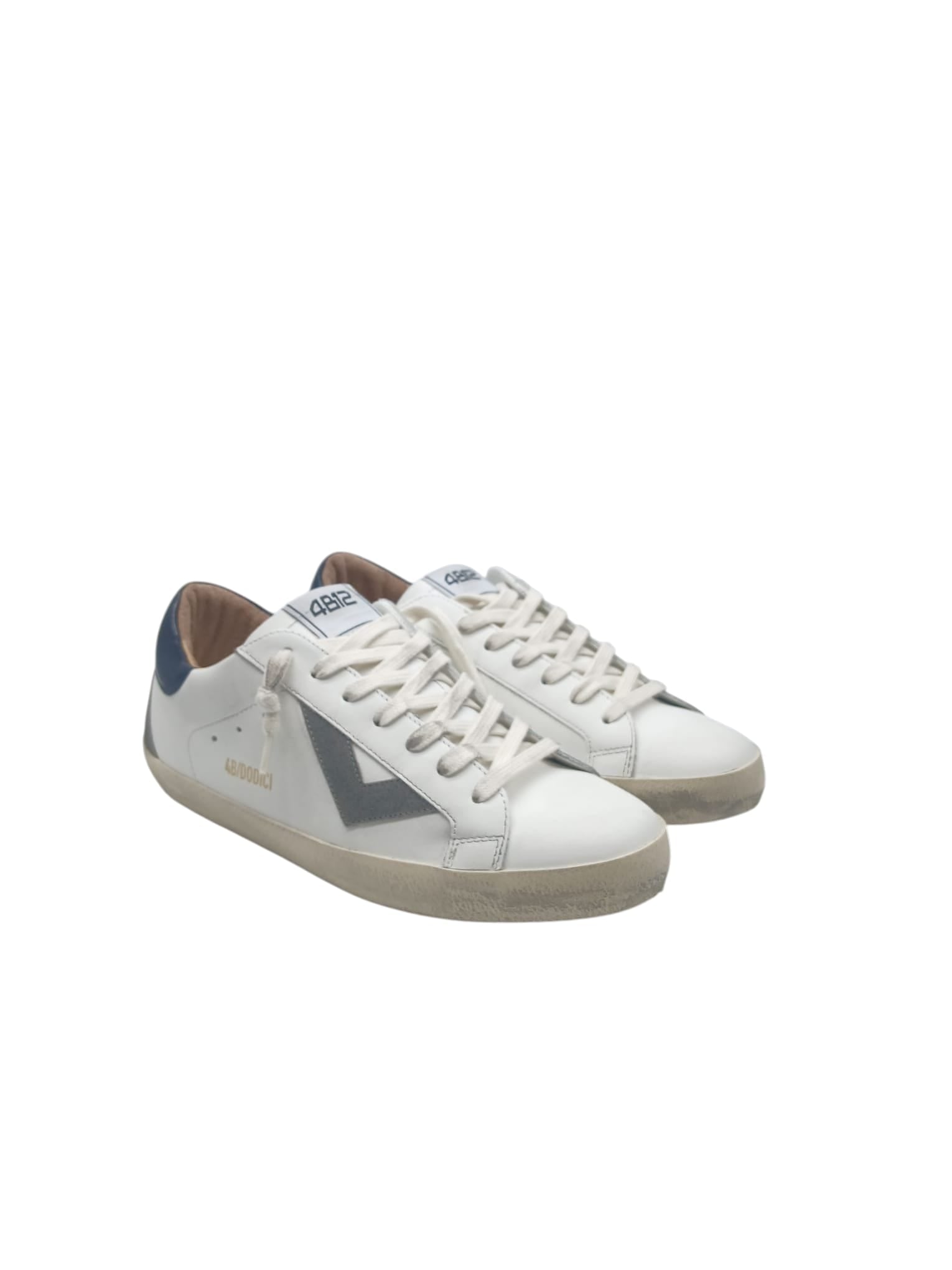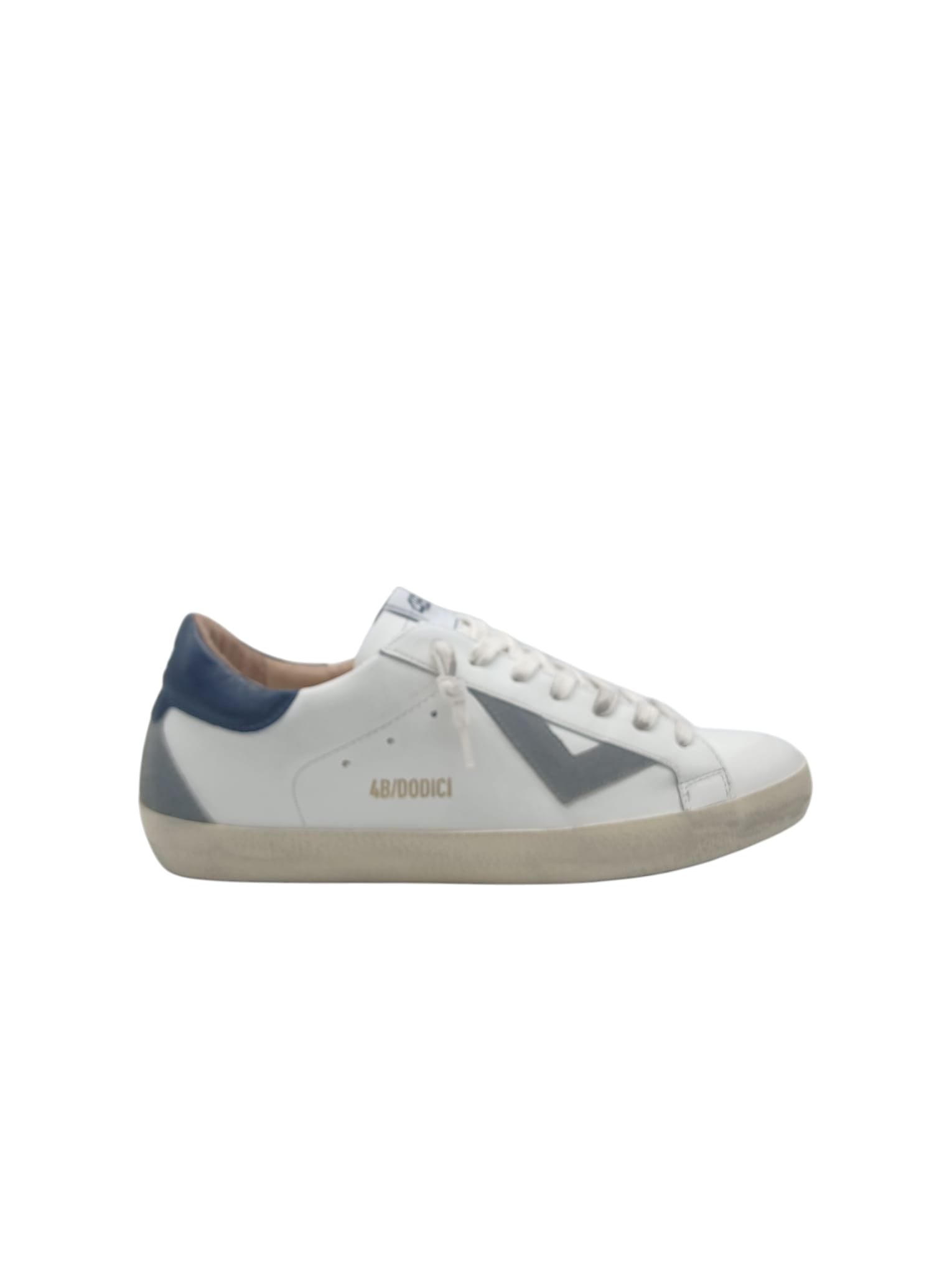 Sneakers in pelle bianca e dettagli in blu e grigio