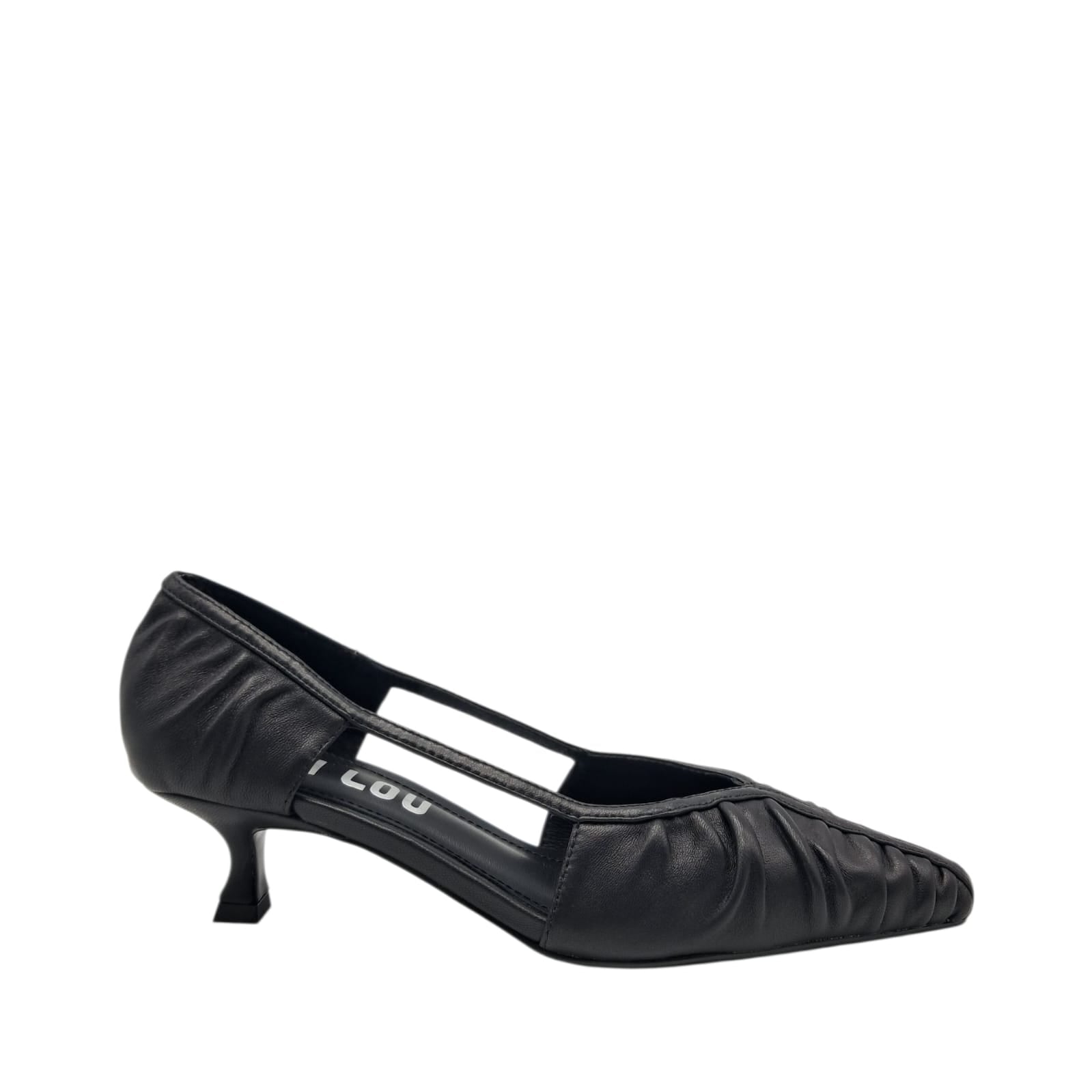 Decoltè neri in pelle con aperture laterali e tacco 5 cm