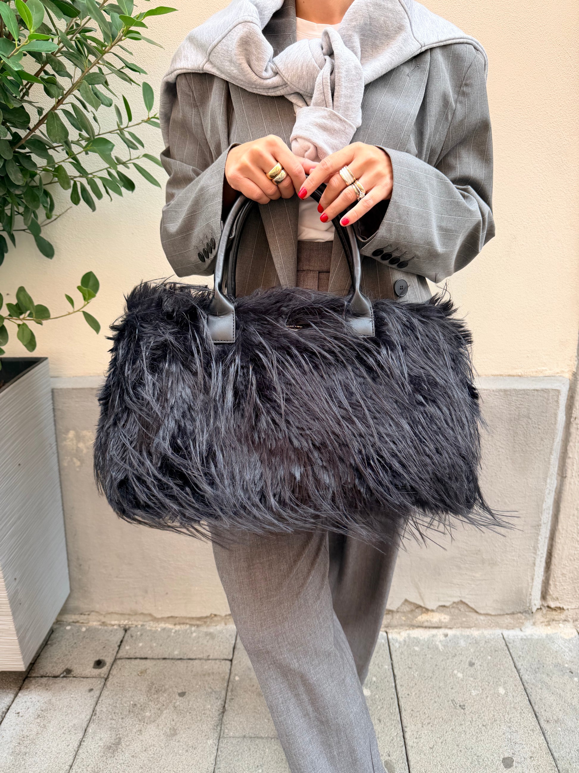 Maxi bag pelo lungo nera con tracolla interna
