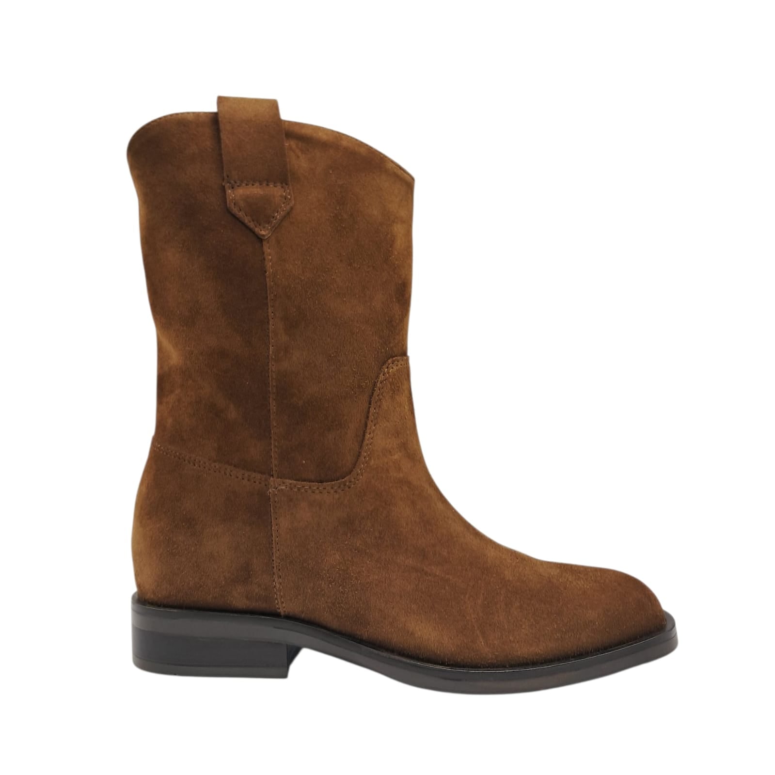 Stivaletto in pelle scamosciata marrone con rialzo interno