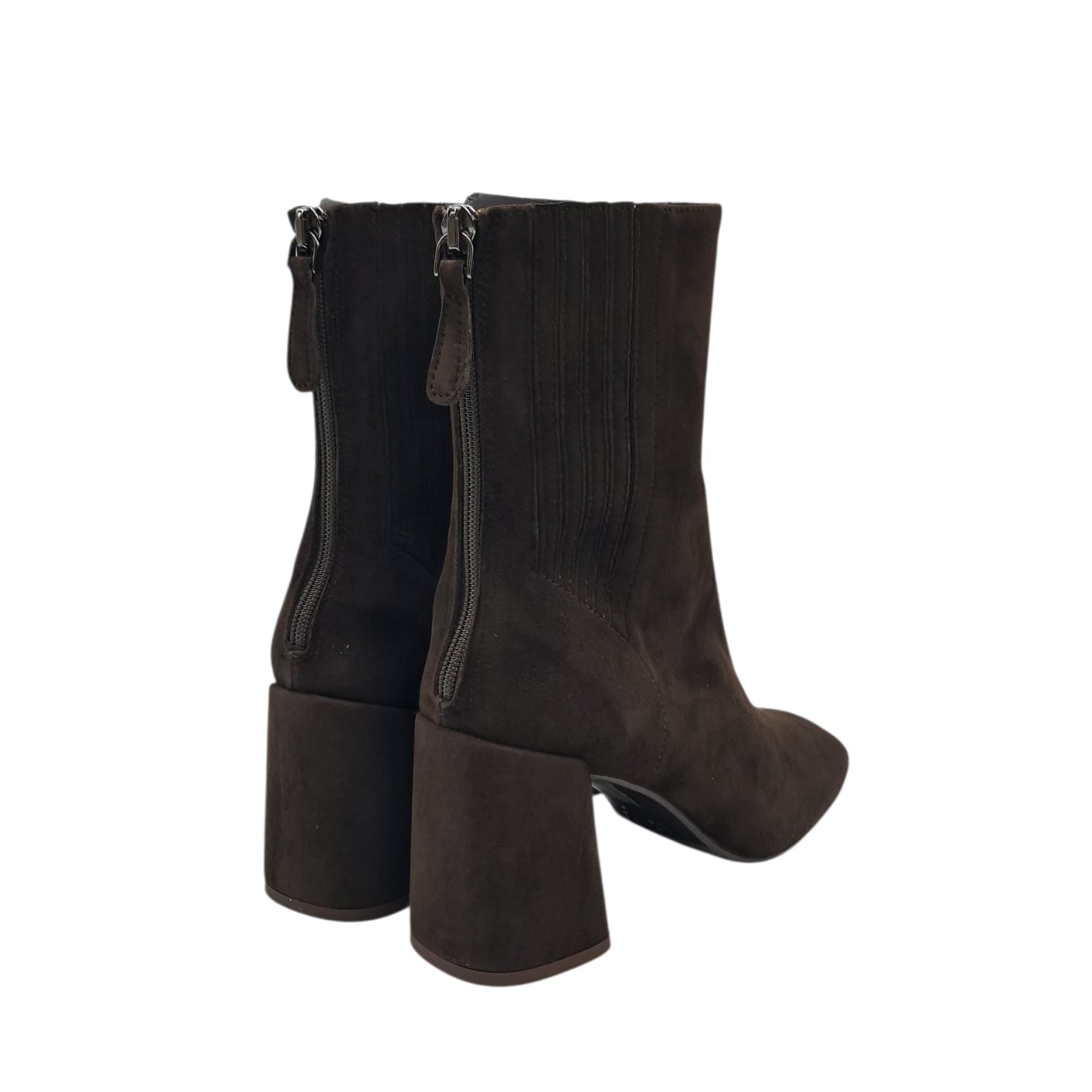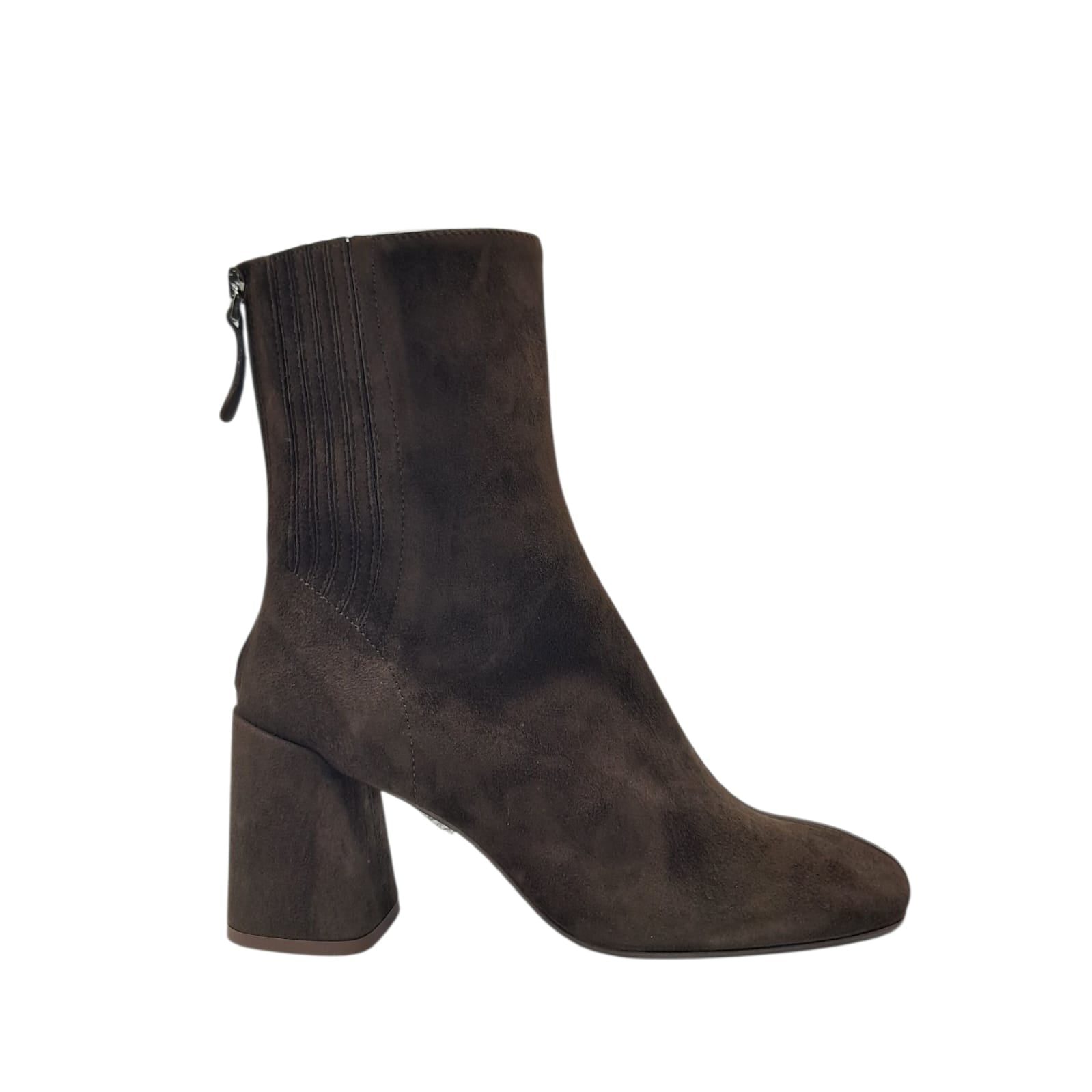 Tronchetto in camoscio taupe, tacco 9 cm, cerniera sul retro