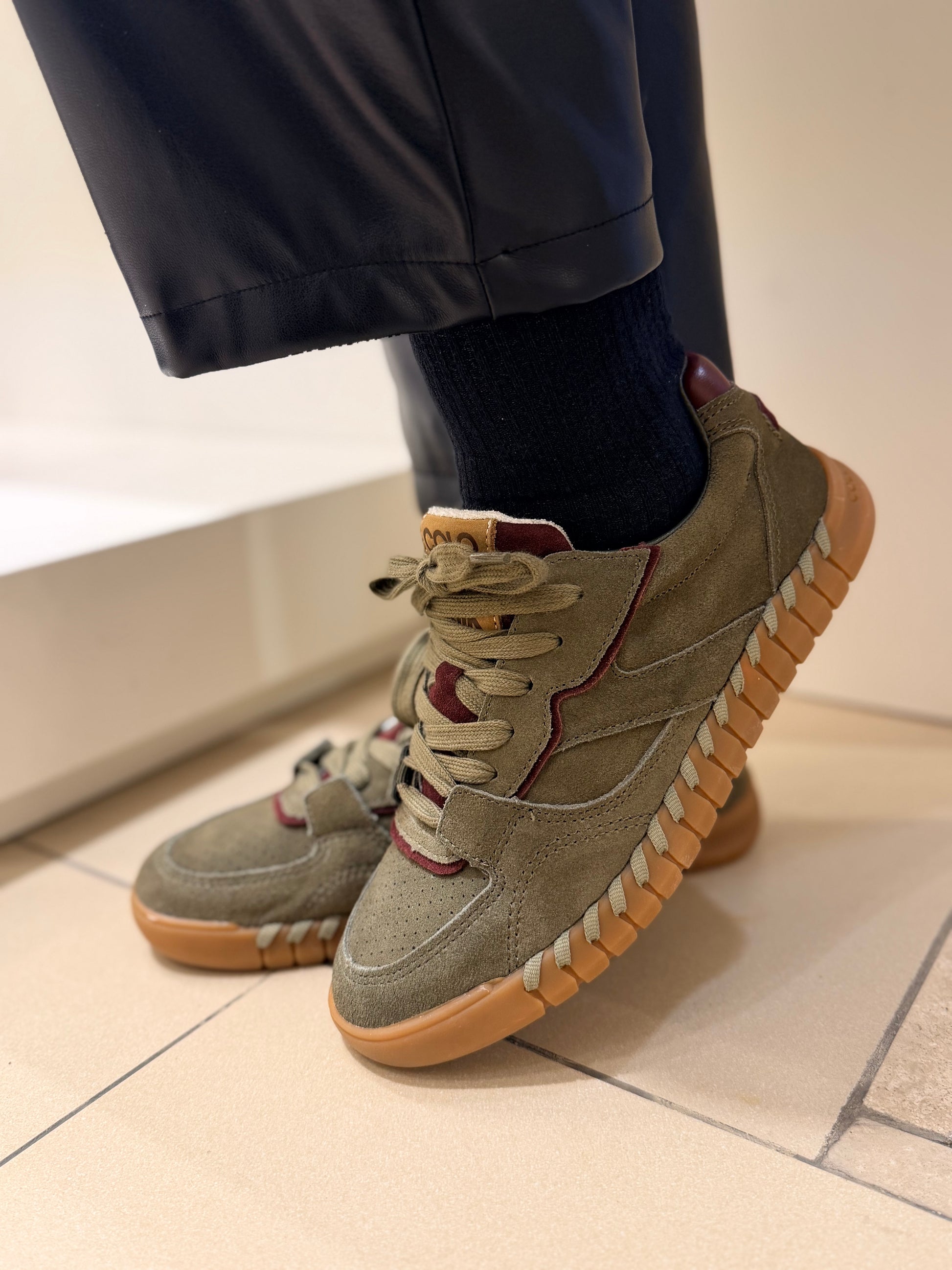 Sneakers in suede verde militare