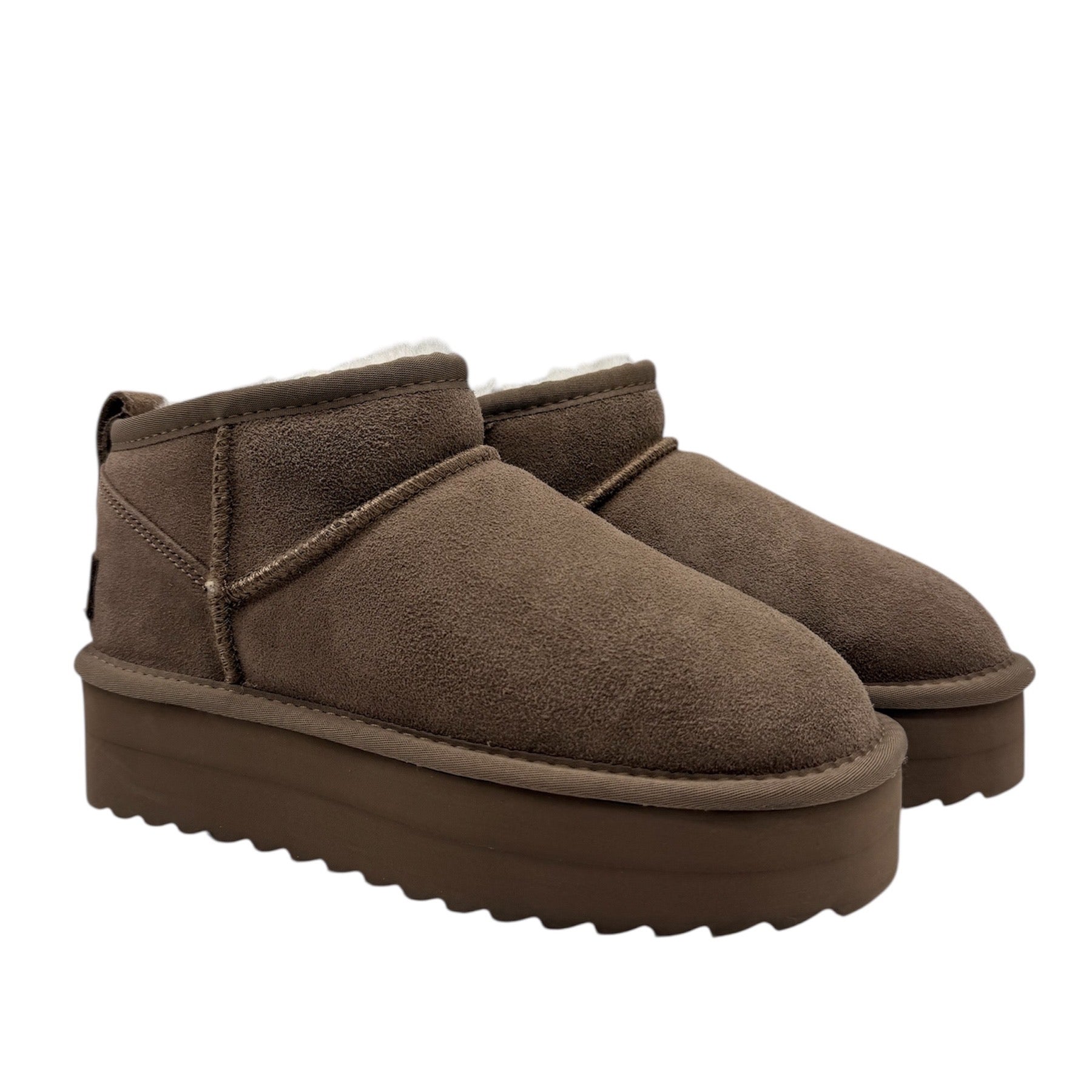 Stivale invernale con suola platform in pelle scamosciata Taupe