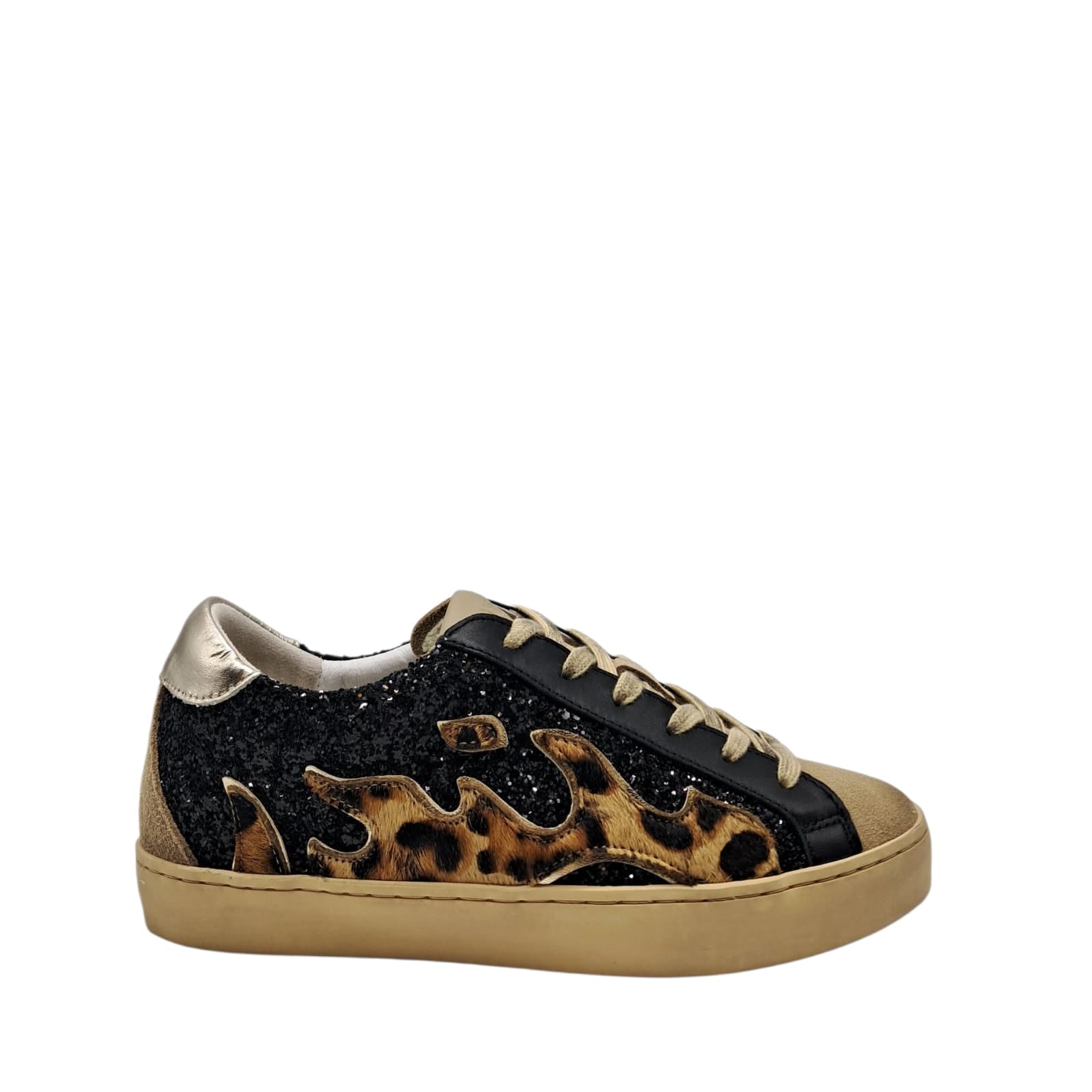 Sneakers in pelle e camoscio nera con dettagli glitter e animalier