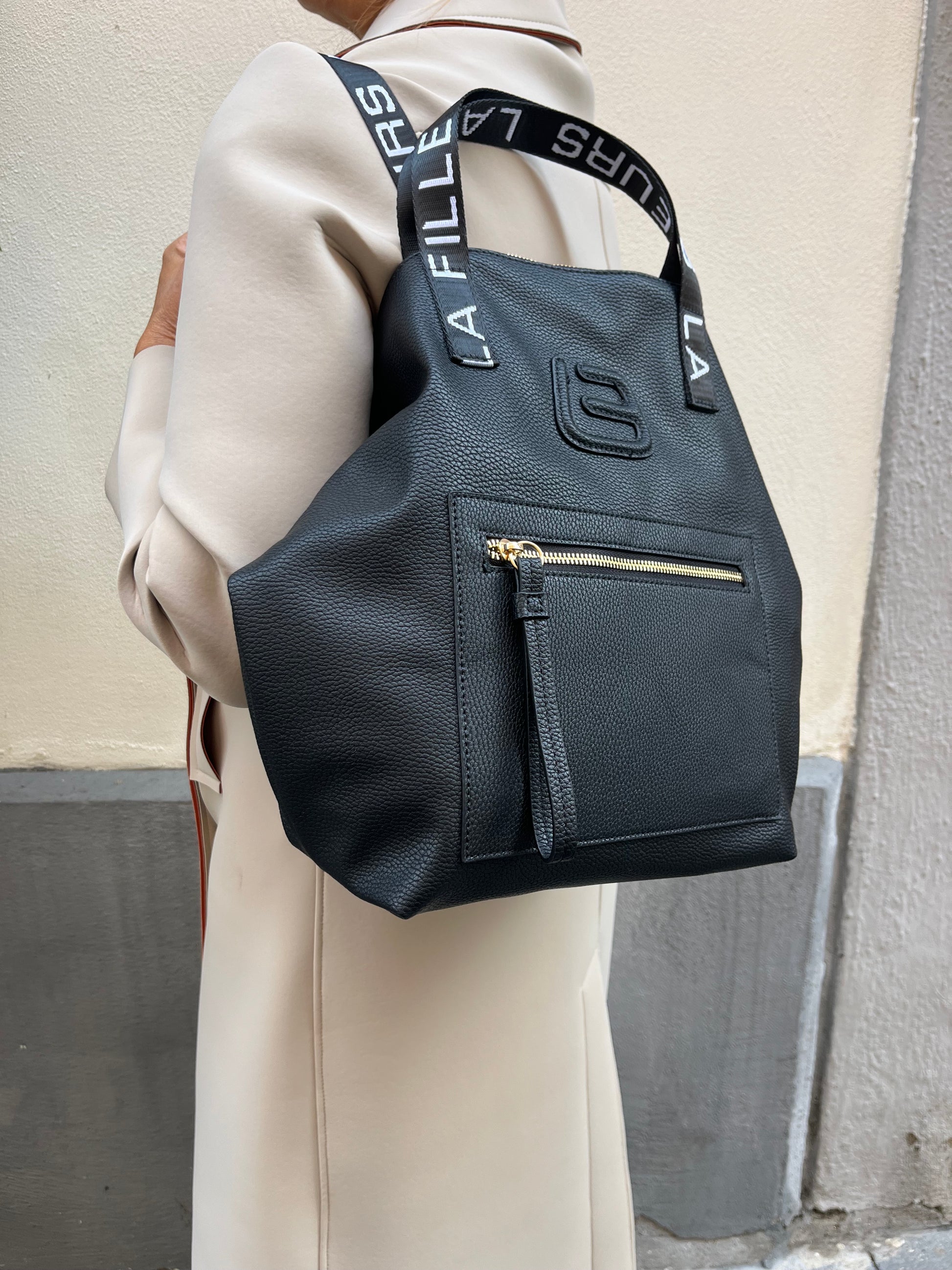 Borsa zaino ecopelle, tasca frontale e manico e bretelle logate