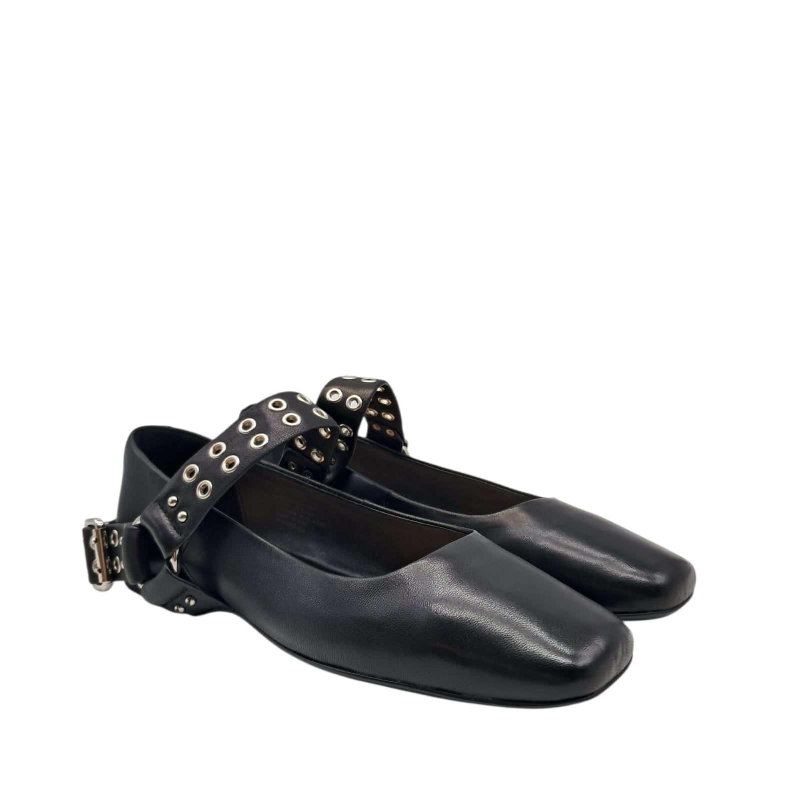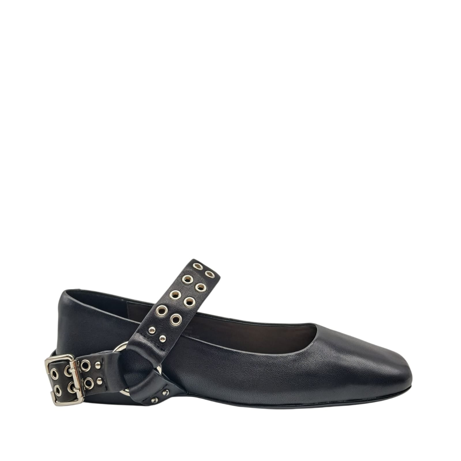 Ballerina in pelle ultramorbida con borchie e fibbie e sottopiede imbottito