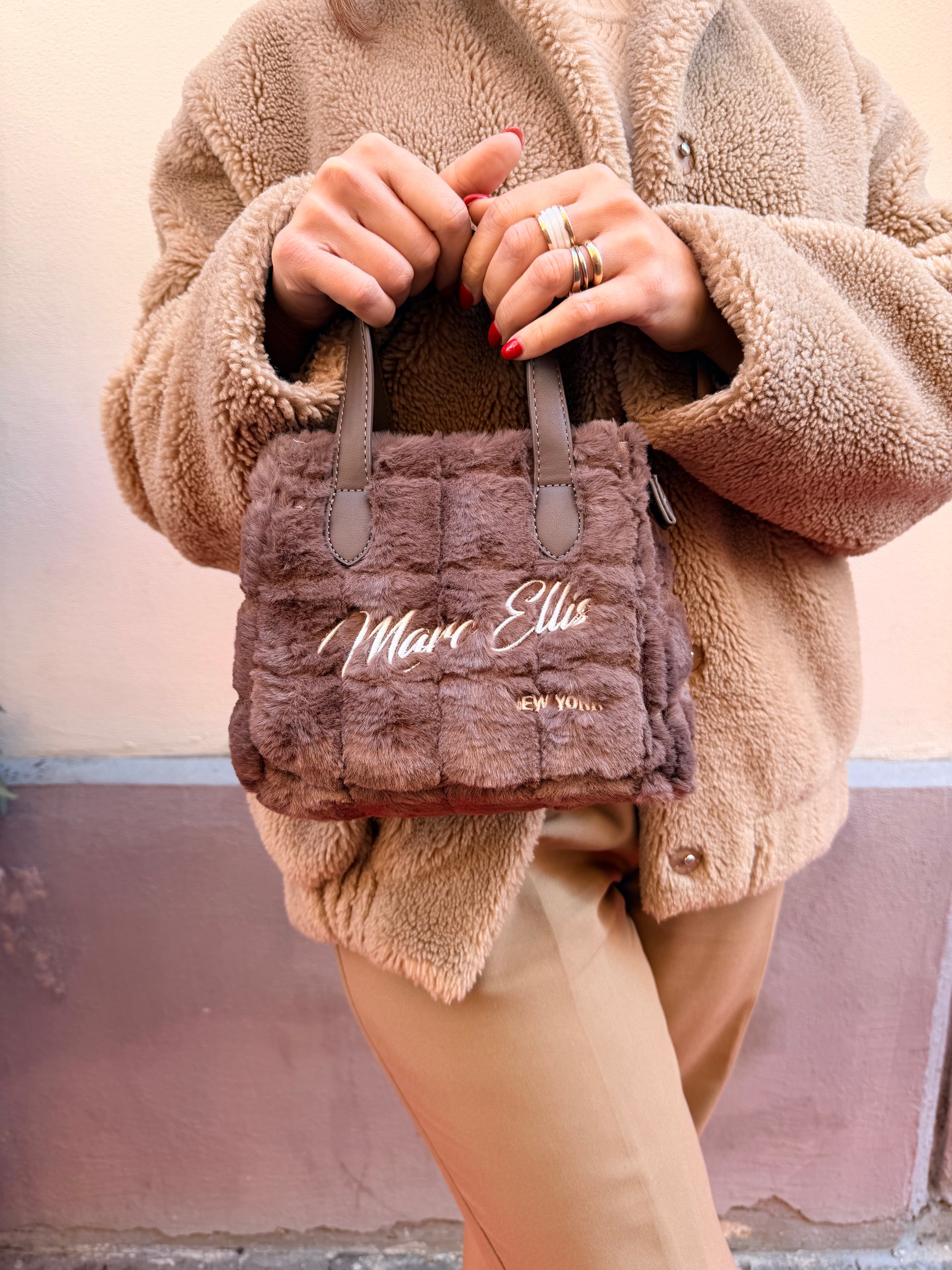 Borsa eco pelliccia con tracolla in tessuto