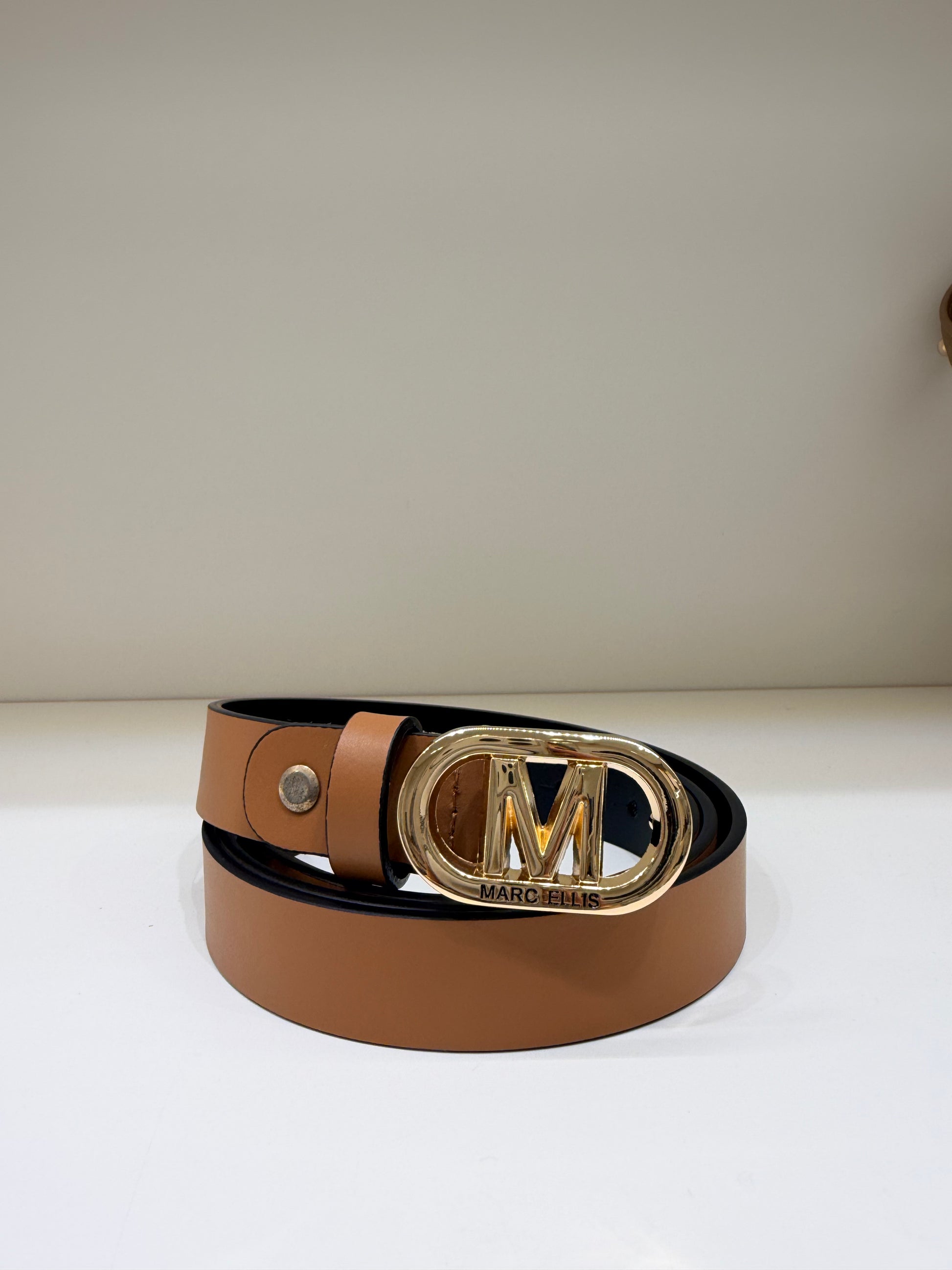 Cintura marrone con logo dorato
