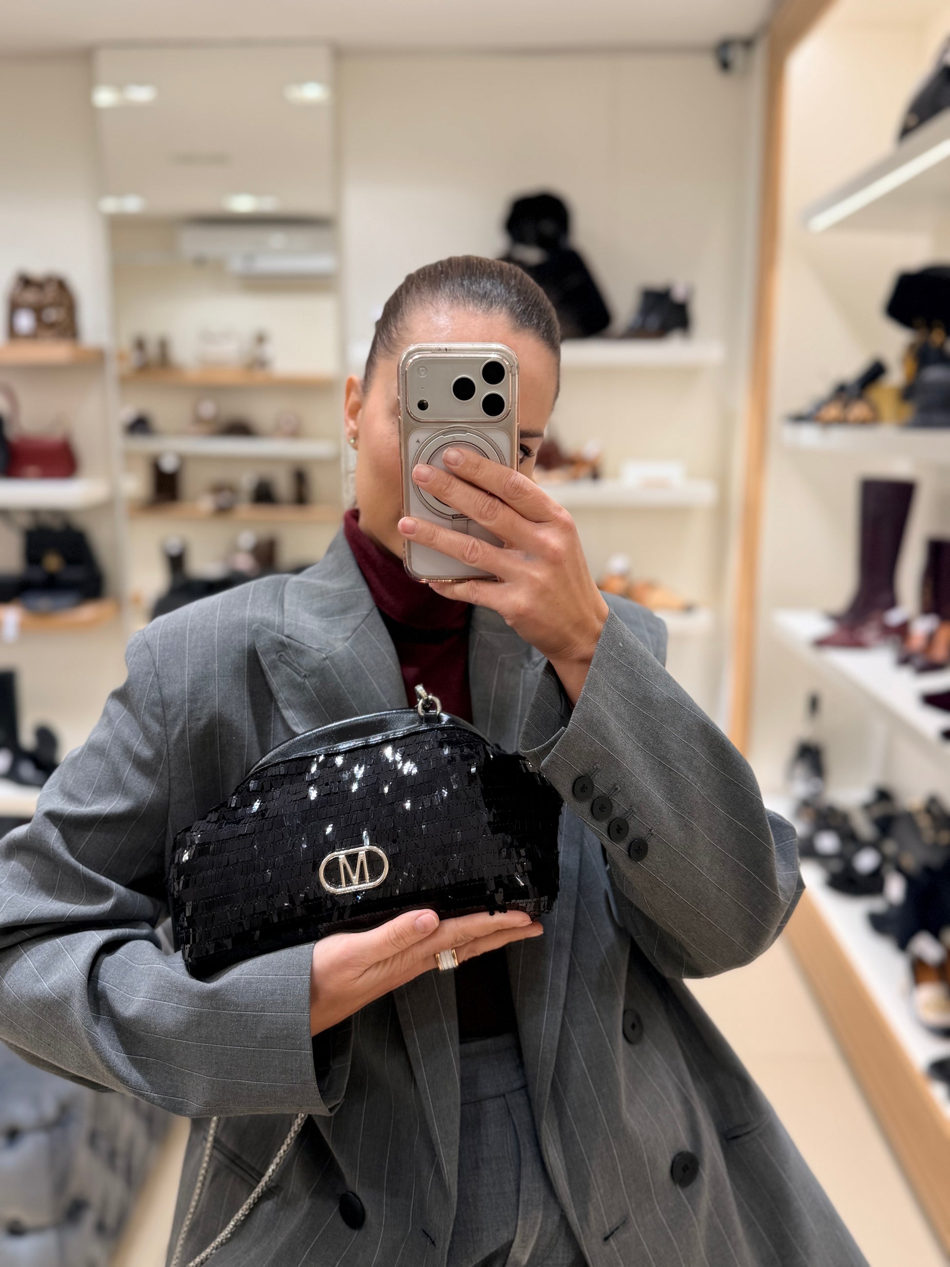 Clautch in paillettes con tracollina in catena