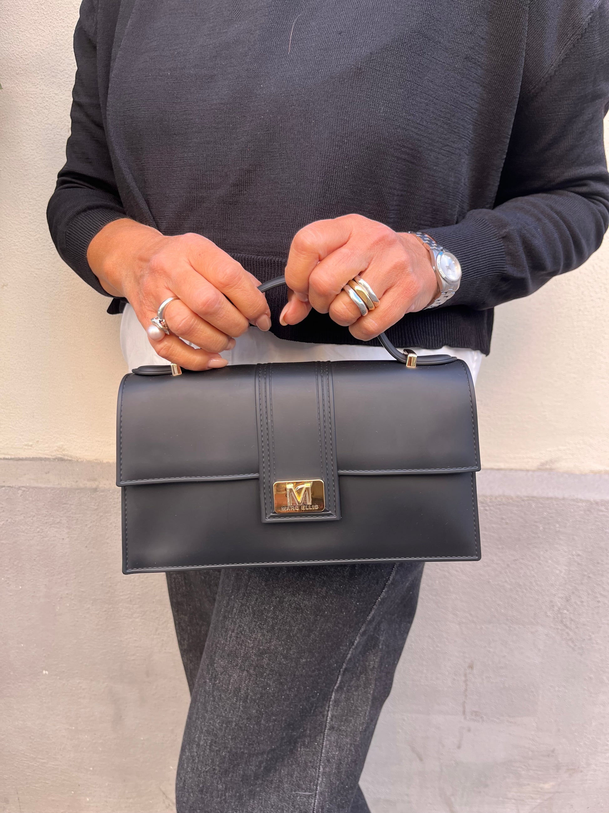 Borsa rettangolare gommata con logo dorato e tracolla in tessuto