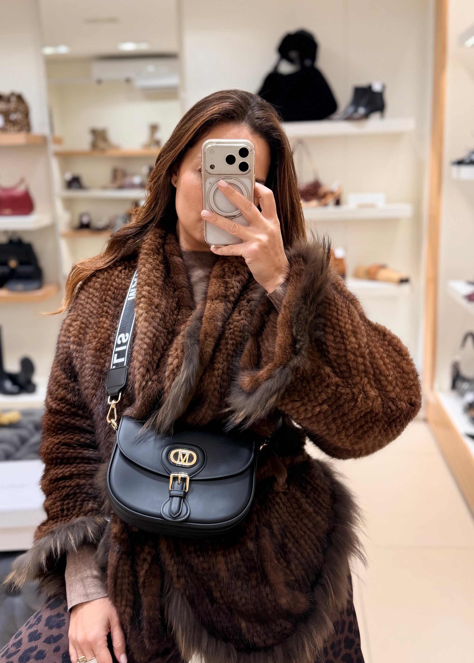 Borsa gommata con dettagli dorati e tracolla in tessuto