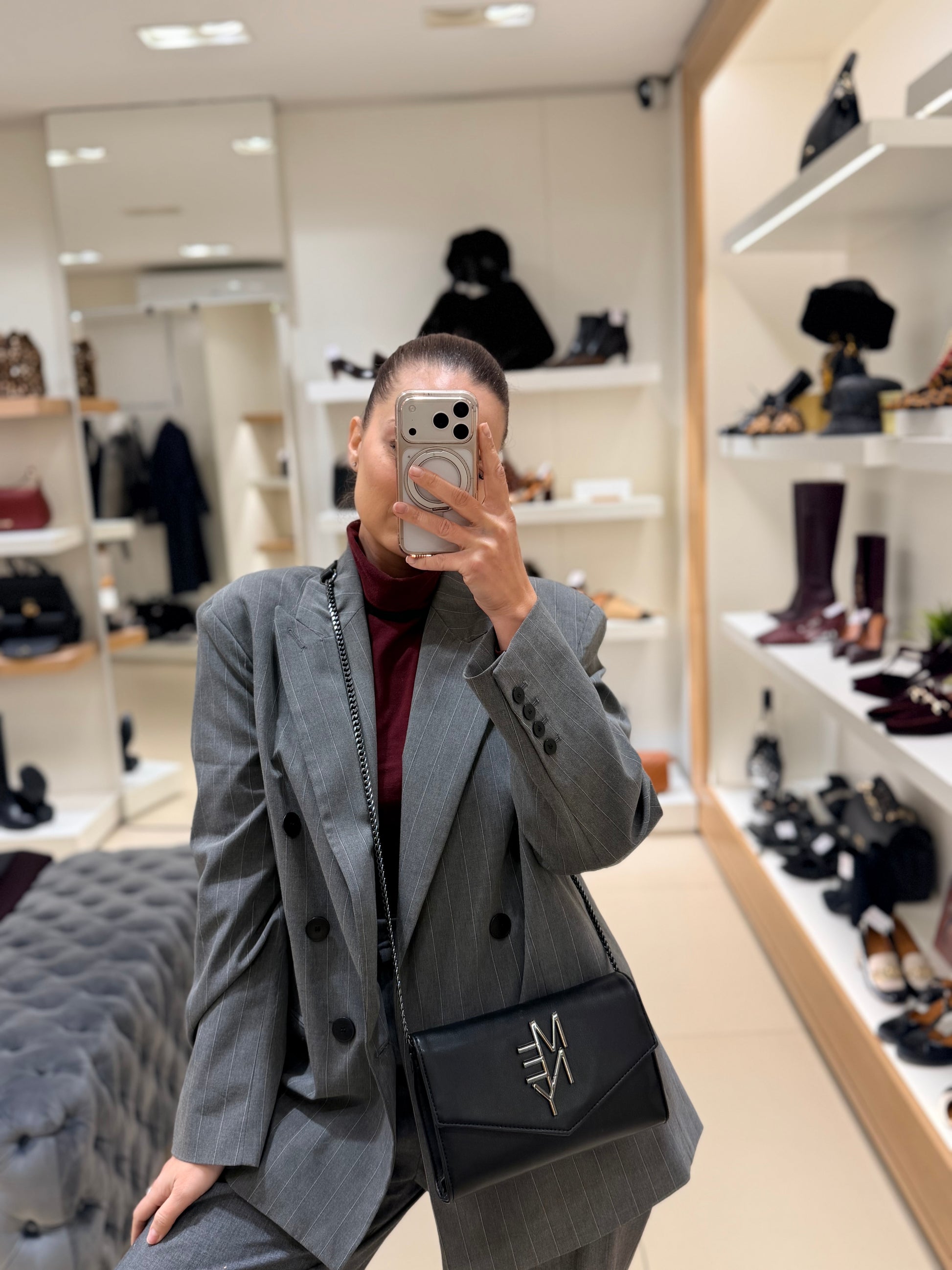 Borsa ecopelle nera con tracolla in catena canna di fucile