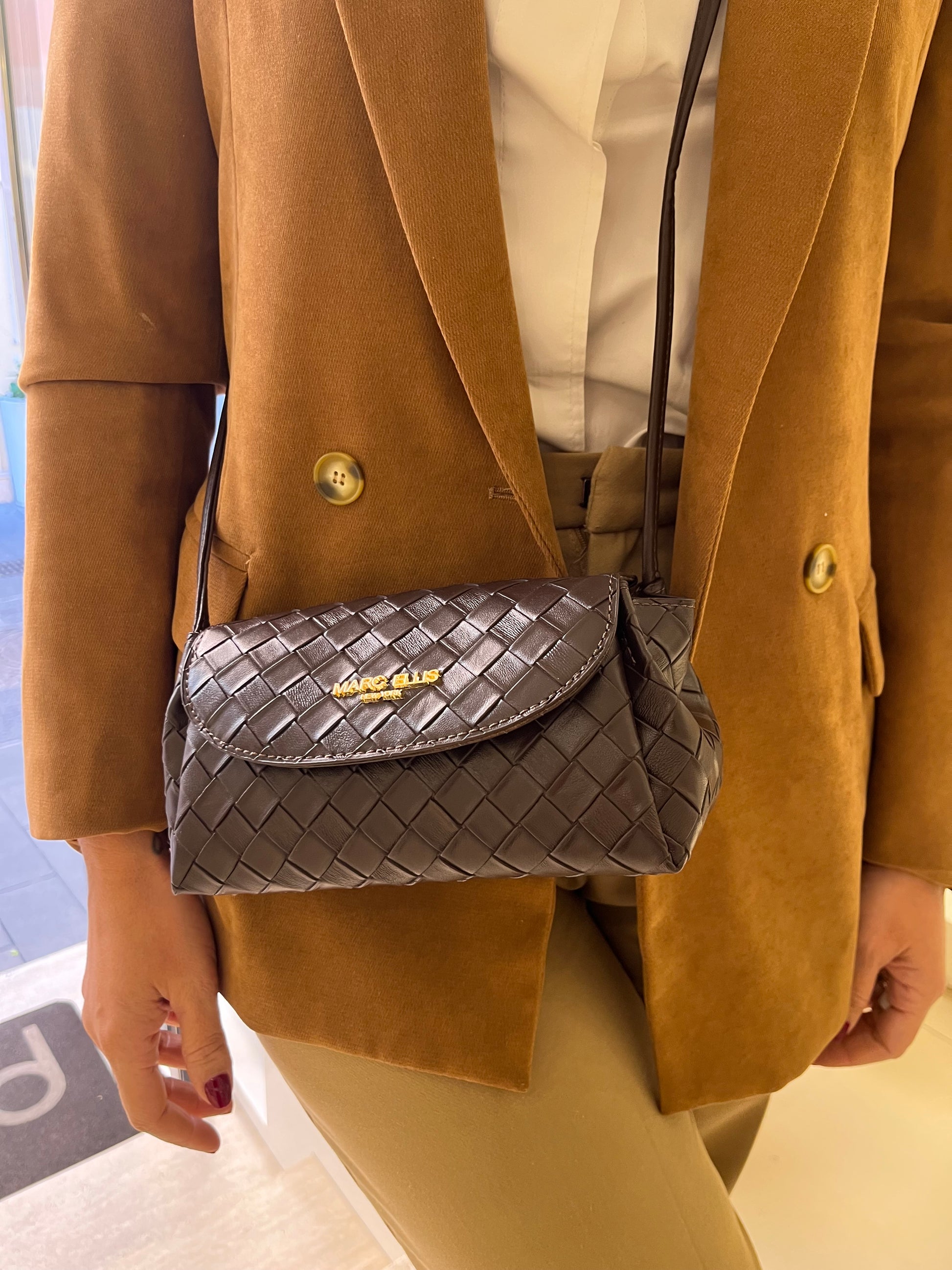 Mini borsetta a tracolla in ecopelle intreccio marrone