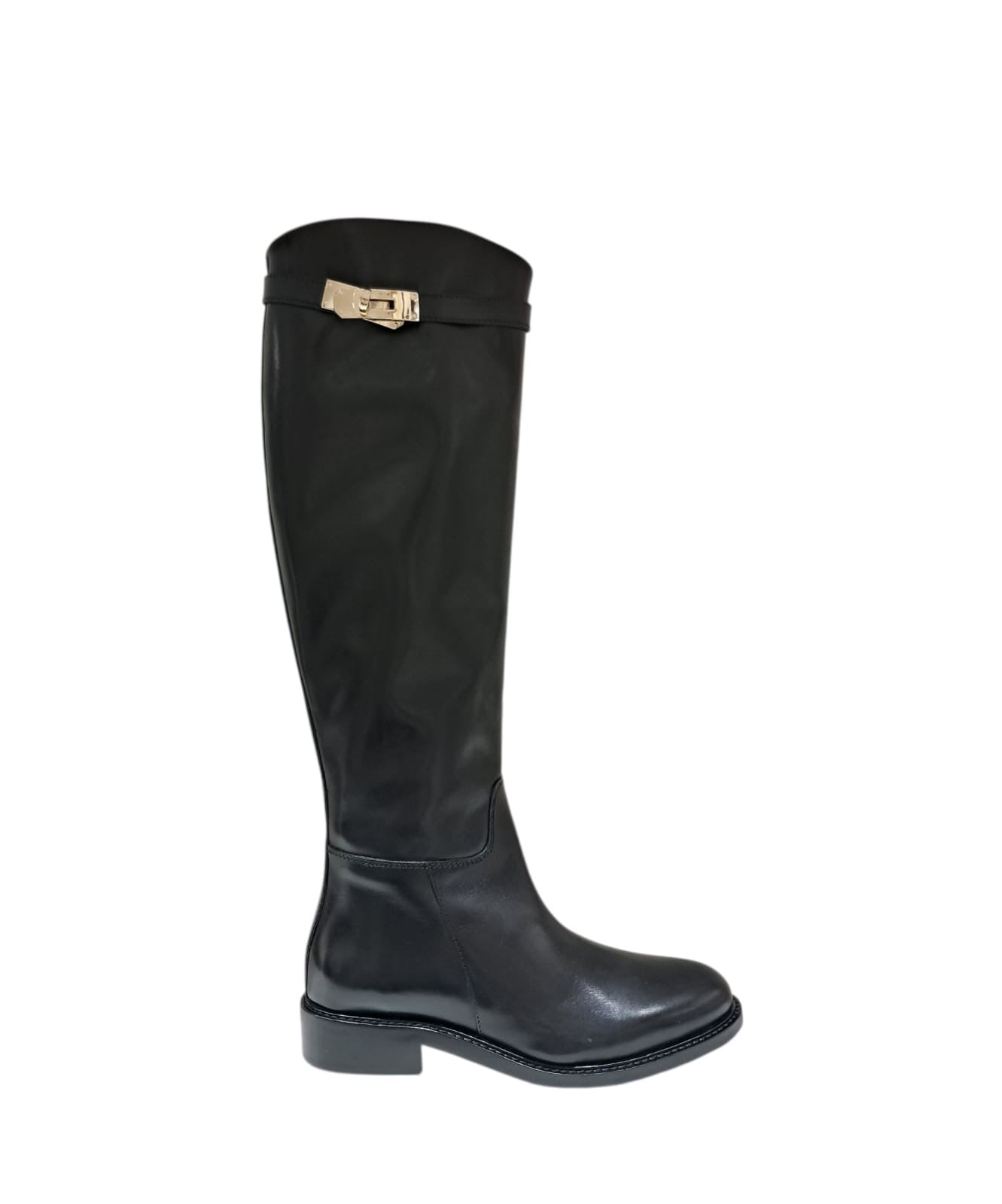 Stivale in pelle nero con fibbia dorata