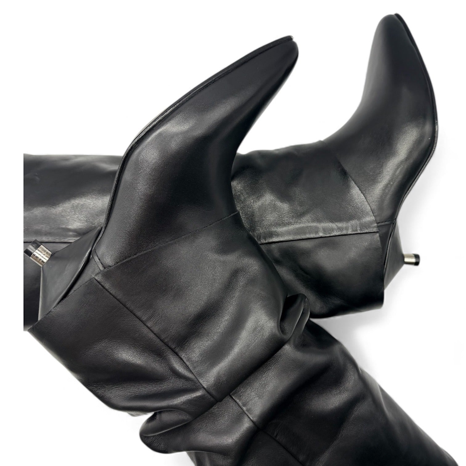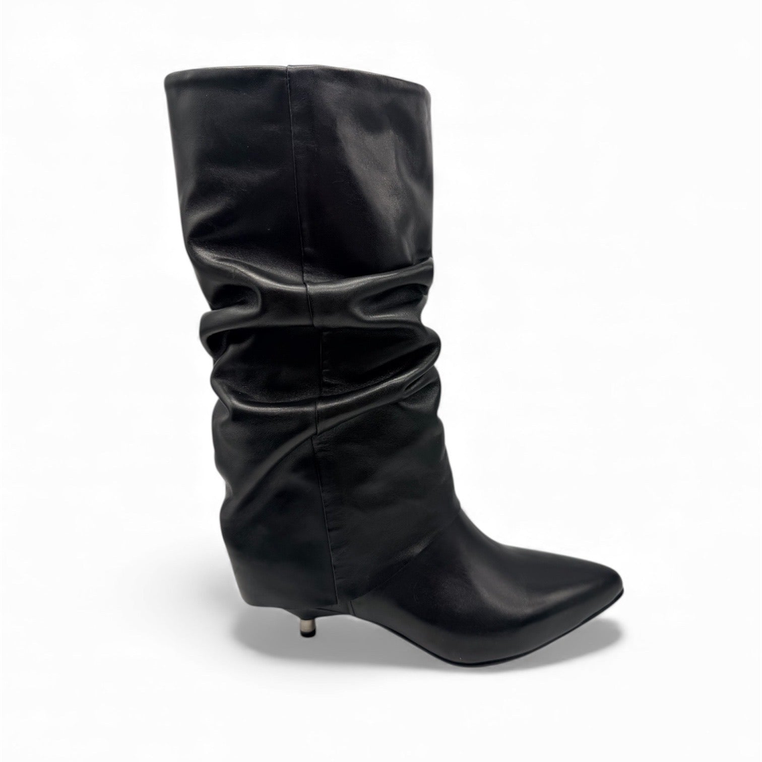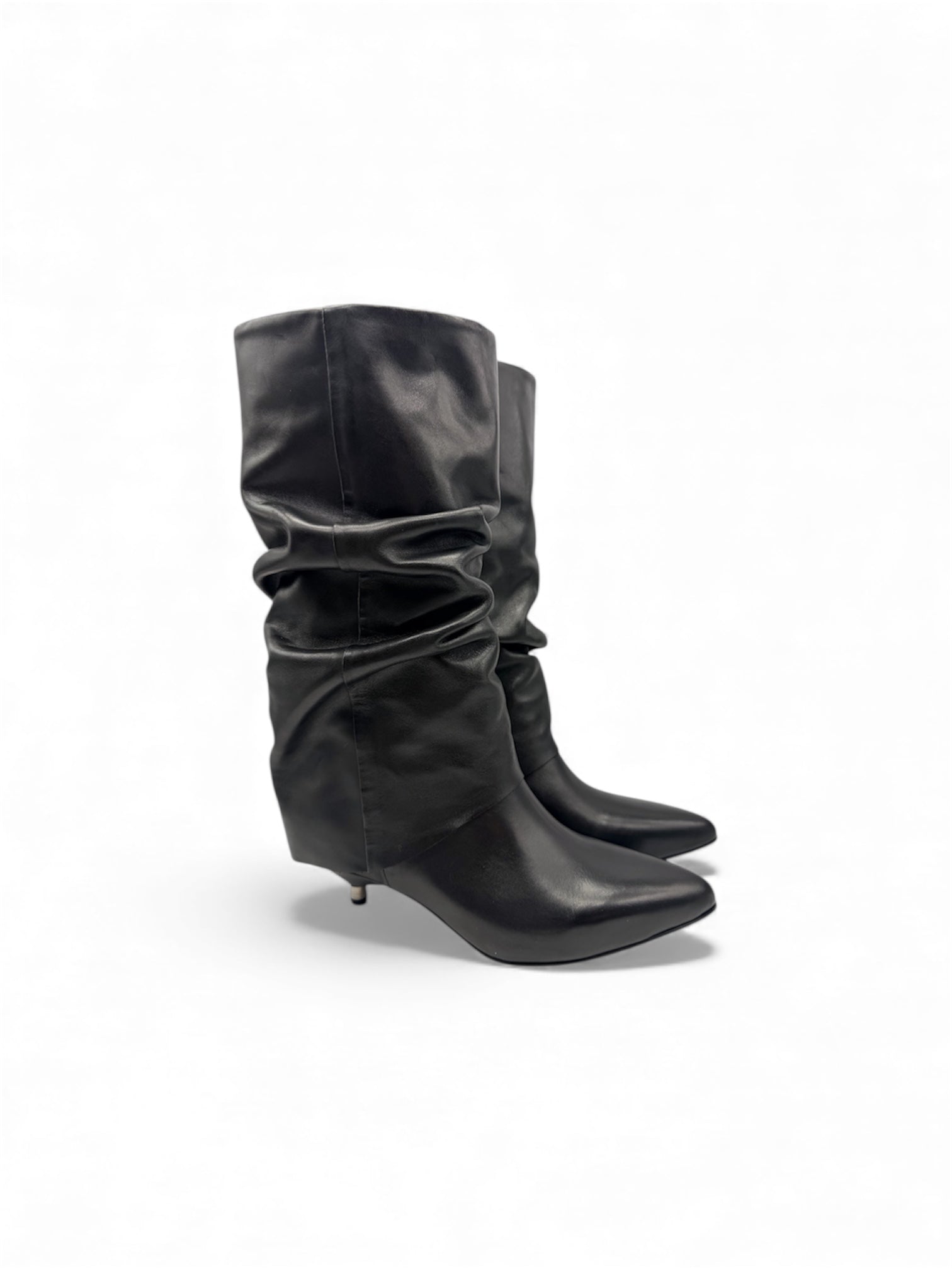 Stivale in pelle nero con arriccio, tacchetto 3 cm
