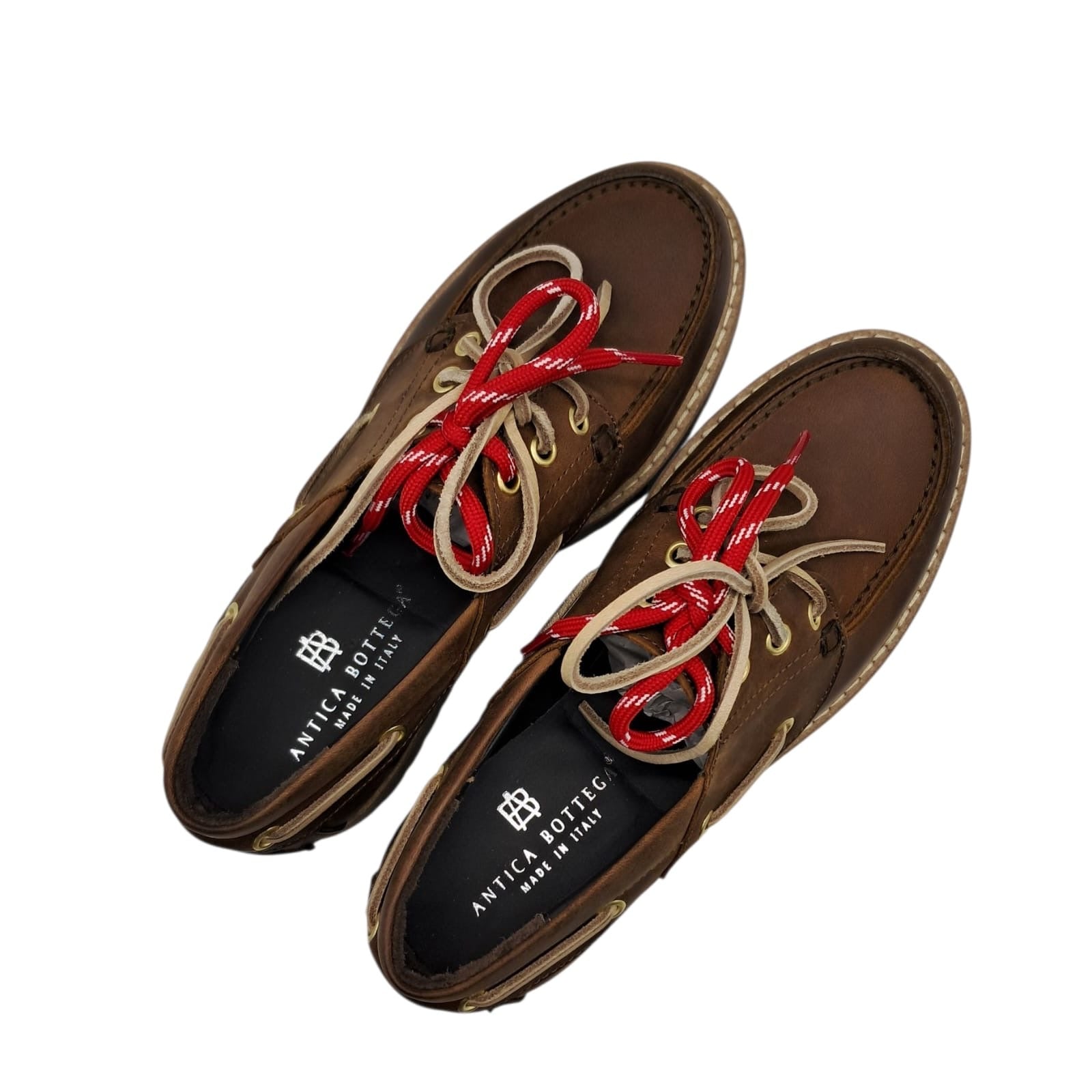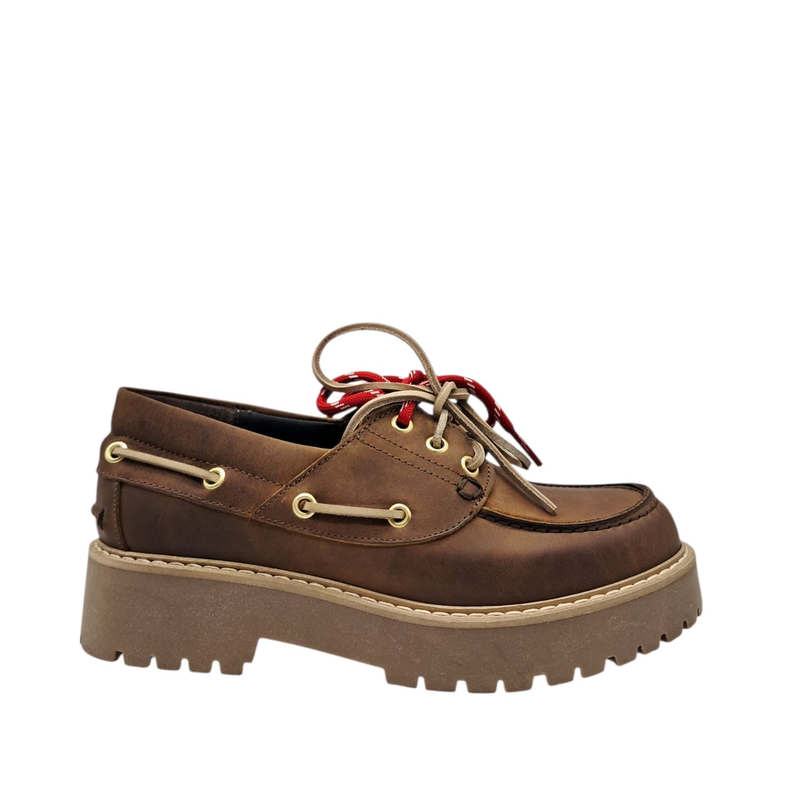 Mocassino in pelle marrone con fondo alto e doppio laccio