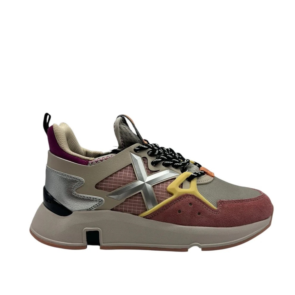 Sneakers in camoscio e tessuto tecnico con dettagli in rosa e multicolore