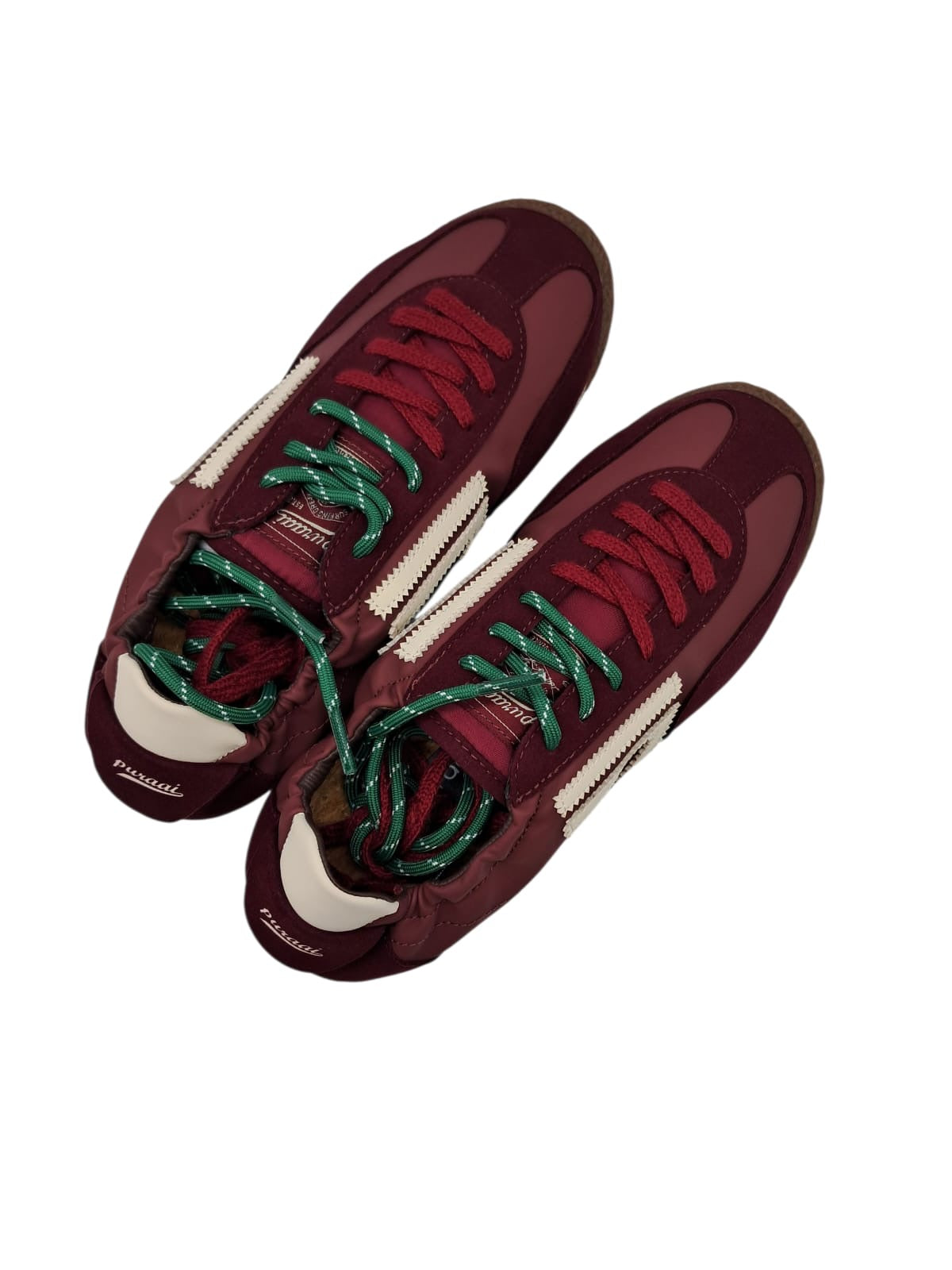 Sneakers in pelle vegana e camoscio bordeaux con doppi lacci